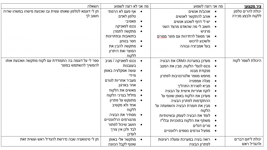 לימוד תהליכי מכירה, טיפול בהתנגדויות, תסריטי שיחה